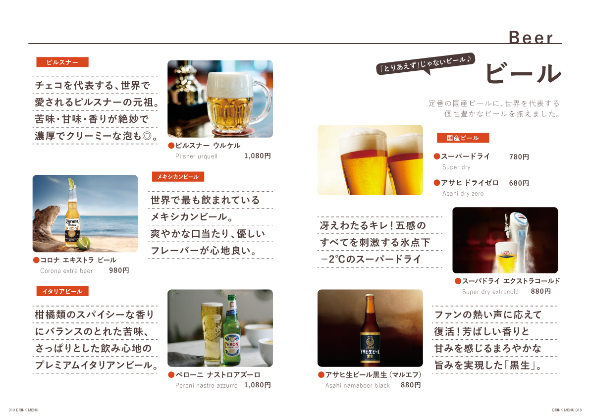 You can choose from over 160 kinds of drink! E,G,【Beer, Whisky, Shochu